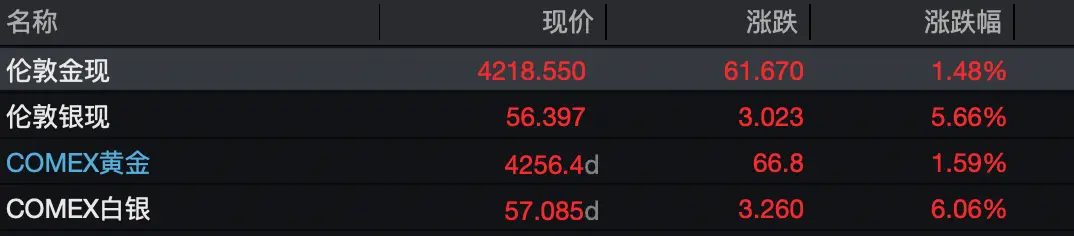 金银价格大涨。鼎锋优配作为一家专注于港股和美股交易的券商,鼎锋优配为投资者提供一站式的投资服务。其交易平台功能强大、操作便捷,能够满足不同投资者的需求北京时间11月28日晚间至11月29日凌晨,国际金价持续走高,现货黄金、COMEX黄金价格均重新站上4200美元/盎司。截至收盘,伦敦金现涨1.48%,报4218.55美元/盎司;C