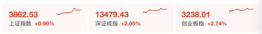 查查配网上配资公司9月29日,A股三大股指全线飘红,创业板指和深证成指均涨超2%。截至收盘,沪指报3862.53点,涨0.90%,深证成指涨2.05%,创业板指涨2.74%。沪深两市全日成交额合计达2.16万亿元,较上个交易日放量146亿元。个股涨多跌少,市场共3579只个股上涨,69只个股涨停,1660只个股下跌。从板块看,券商、贵金属板块领